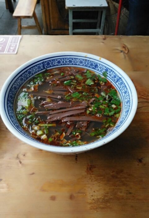 - 组装和享用:将煮好的面条分装到碗中。舀入足量的热腾腾的辣子酱。撒上切碎的新鲜香菜、切成薄片的煎蛋和/或切成薄片的豆腐皮作为装饰。立即享用。传统做法是在加入酱料之前,先在碗中加入少量煮面水或清汤。